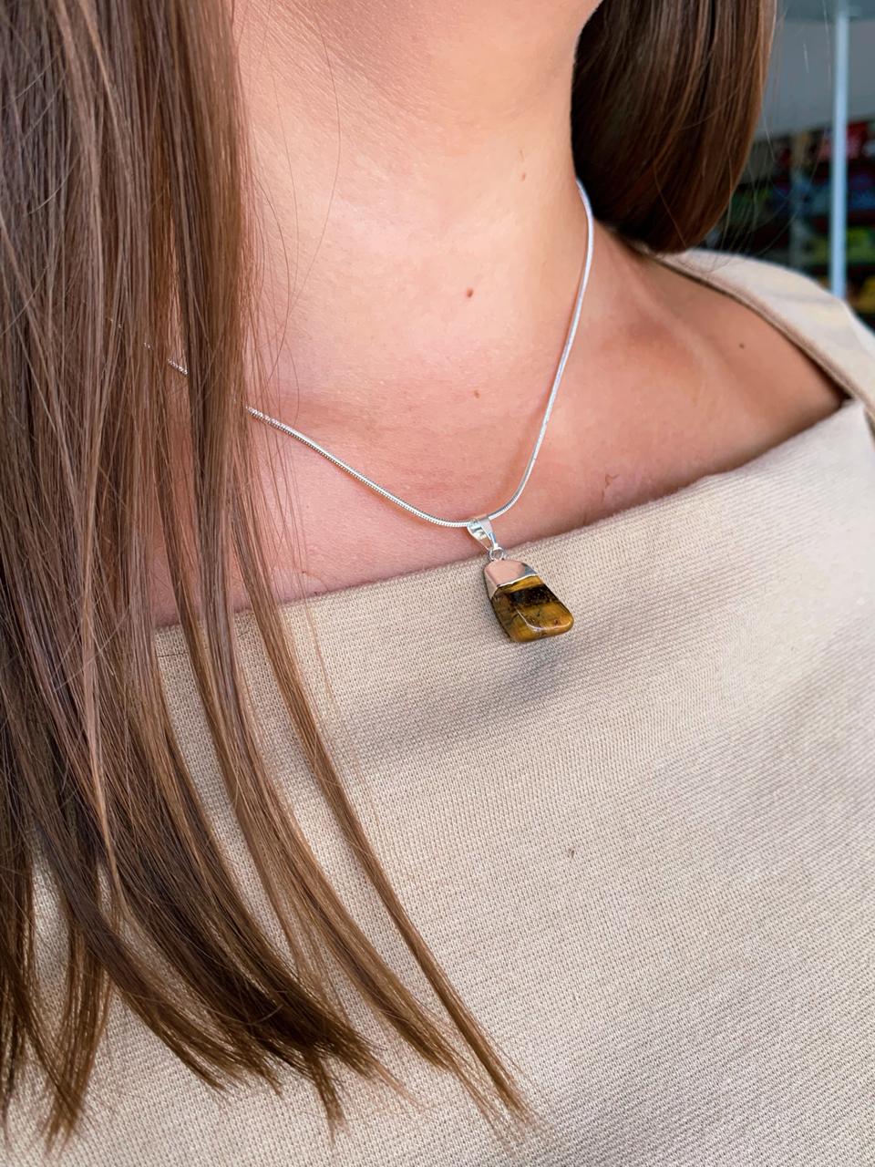 O conjunto de colar e pulseira de Olho de Tigre é uma combinação que transmite força, proteção e determinação.
