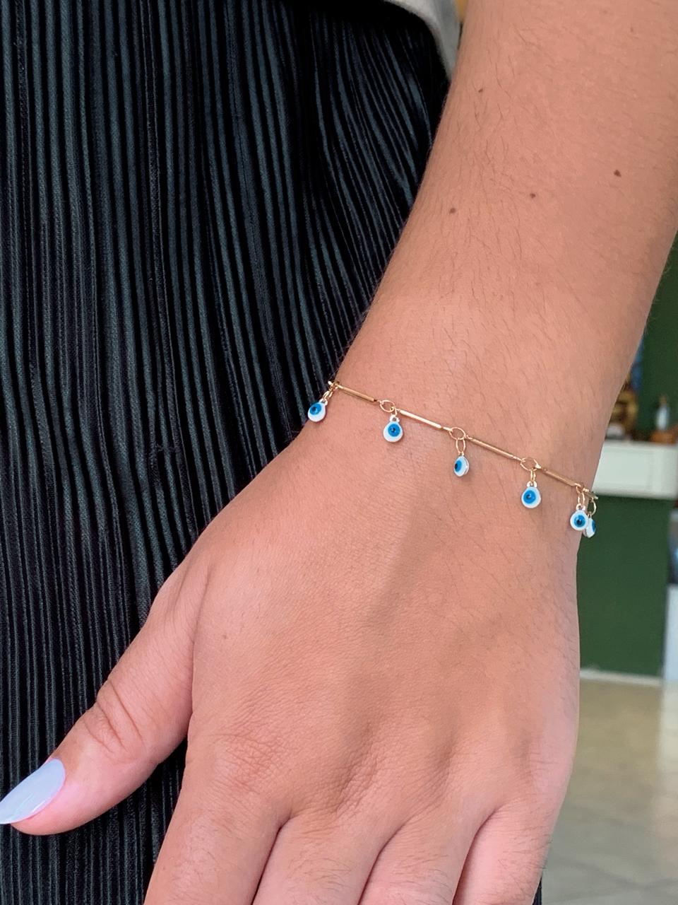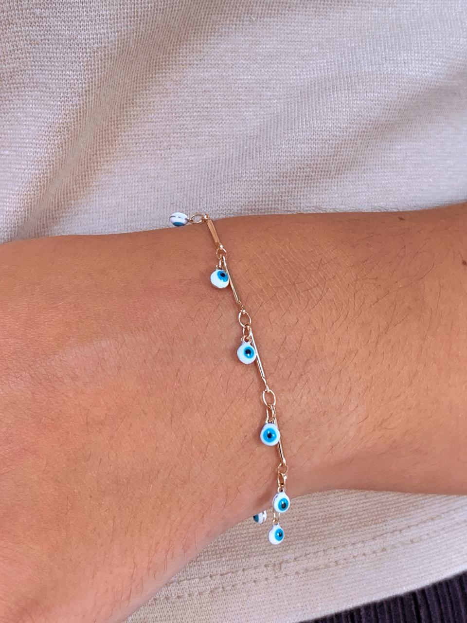 A pulseira de Olho Grego banhada em ouro é um acessório que une proteção simbólica e sofisticação.