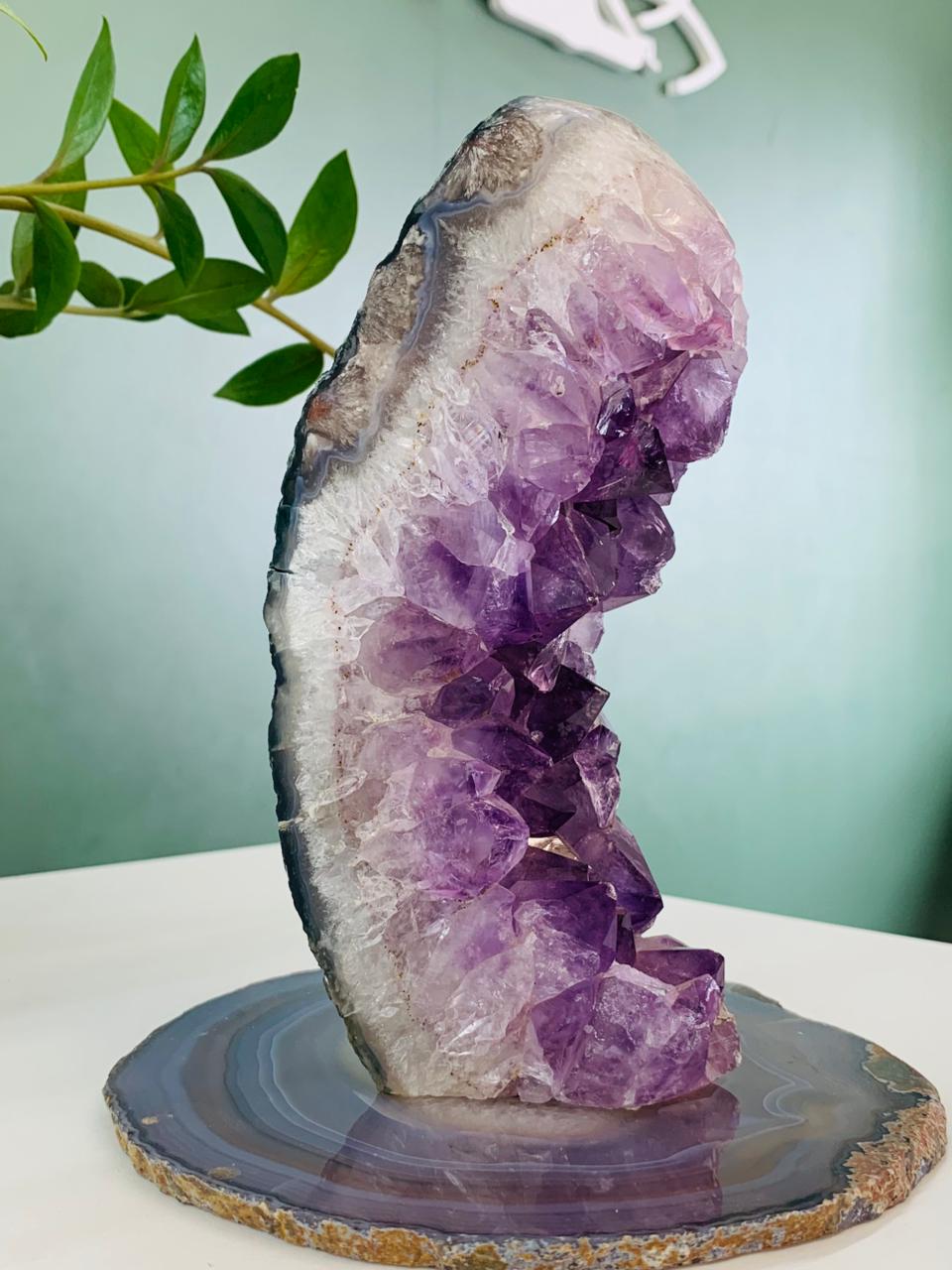 Além do significado energético, a drusa de ametista é uma peça decorativa sofisticada. Seu tom violeta intenso e o brilho natural dos cristais tornam cada peça única.
