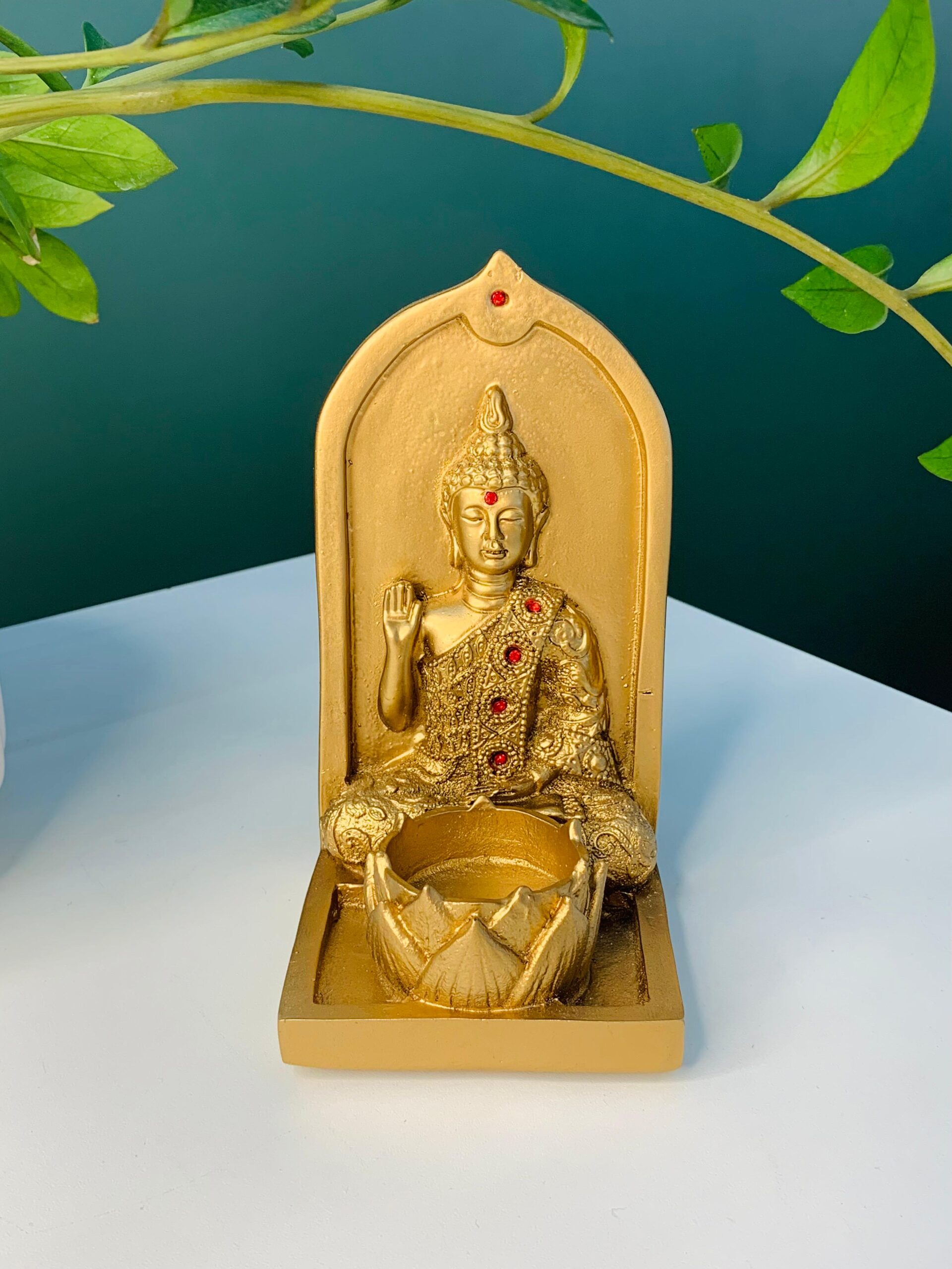 O incensário de Buda em dourado é uma peça que simboliza paz, elevação espiritual e transformação interior.