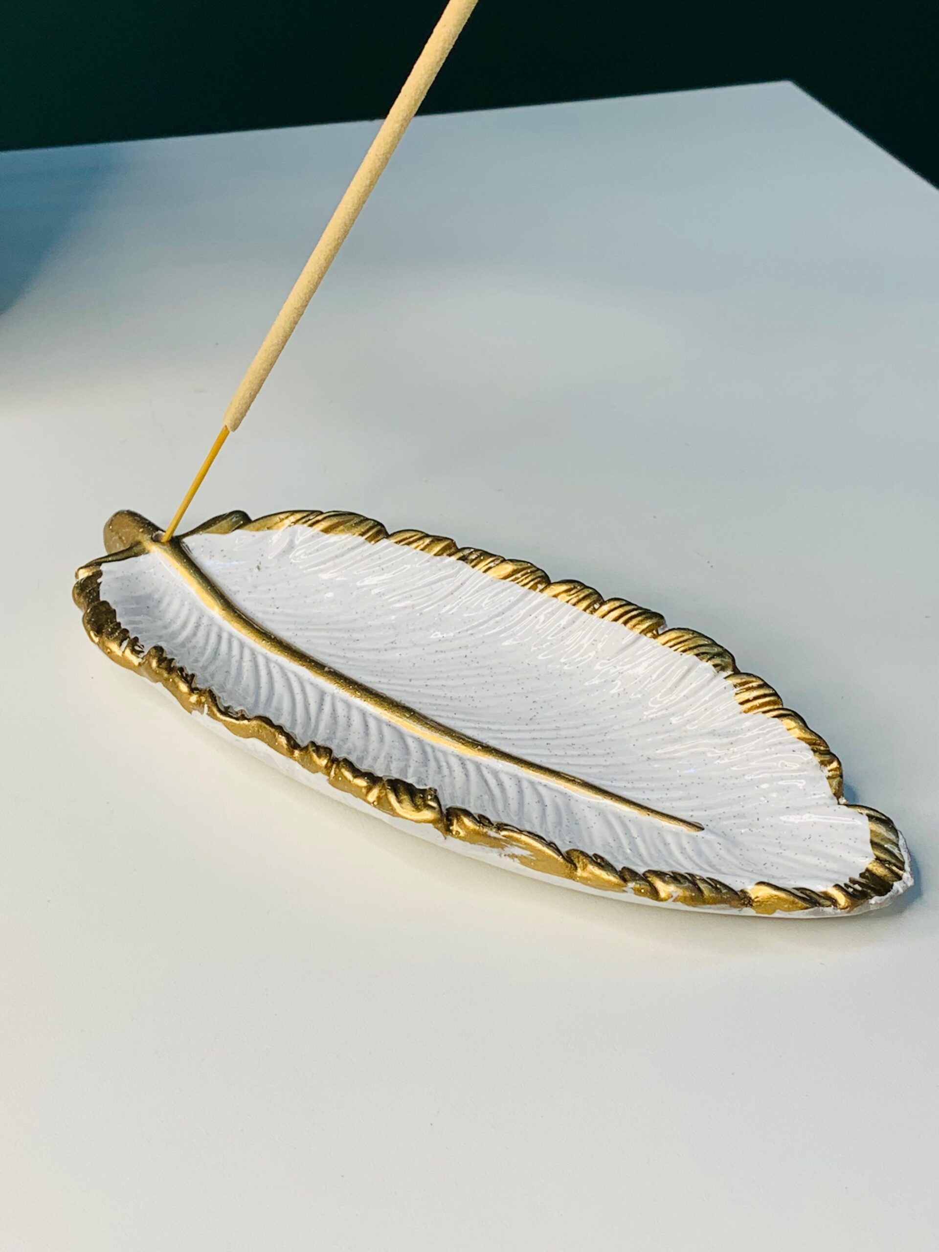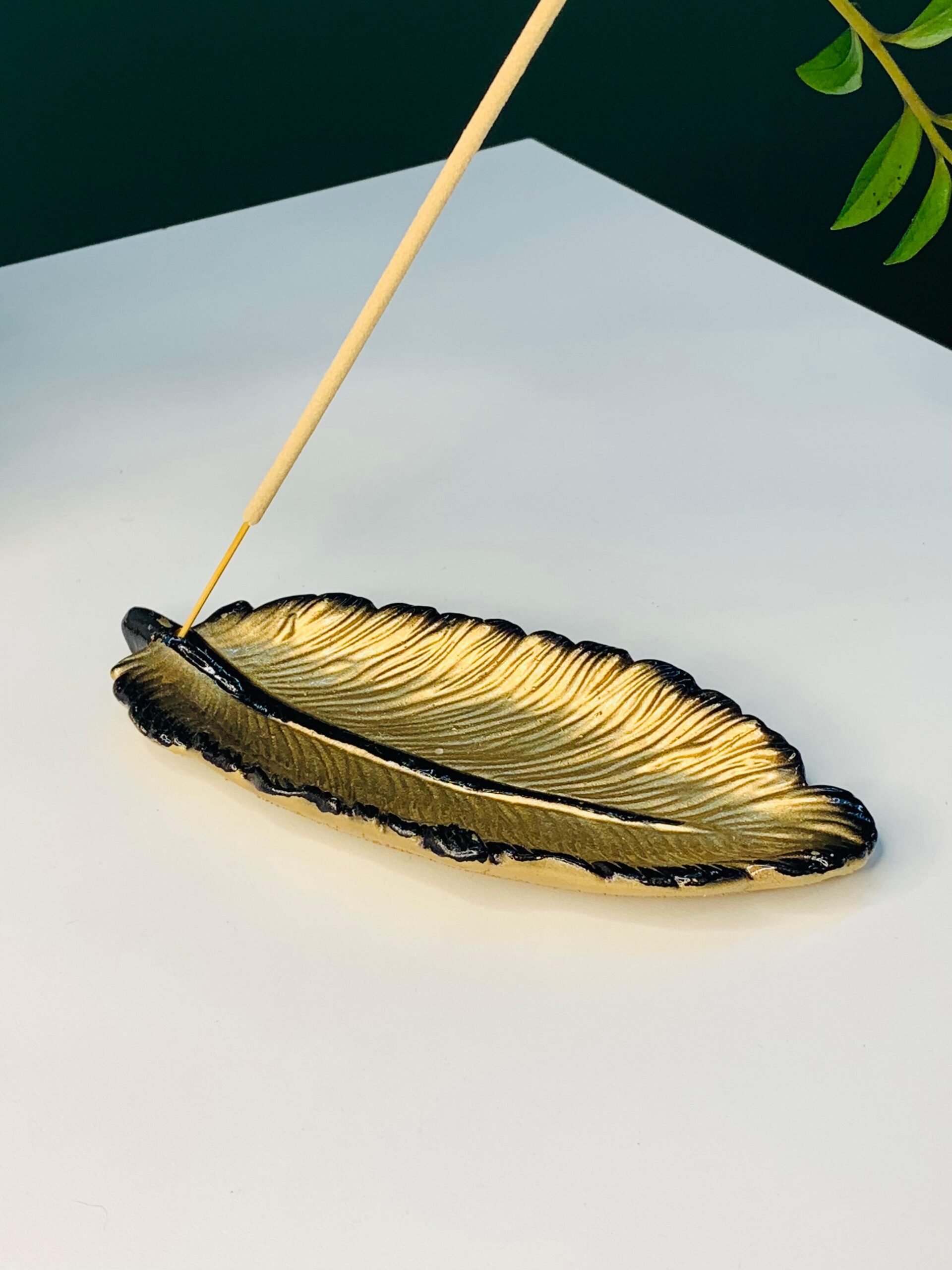O incensário em formato de pena é uma peça que une delicadeza, natureza e bem-estar.