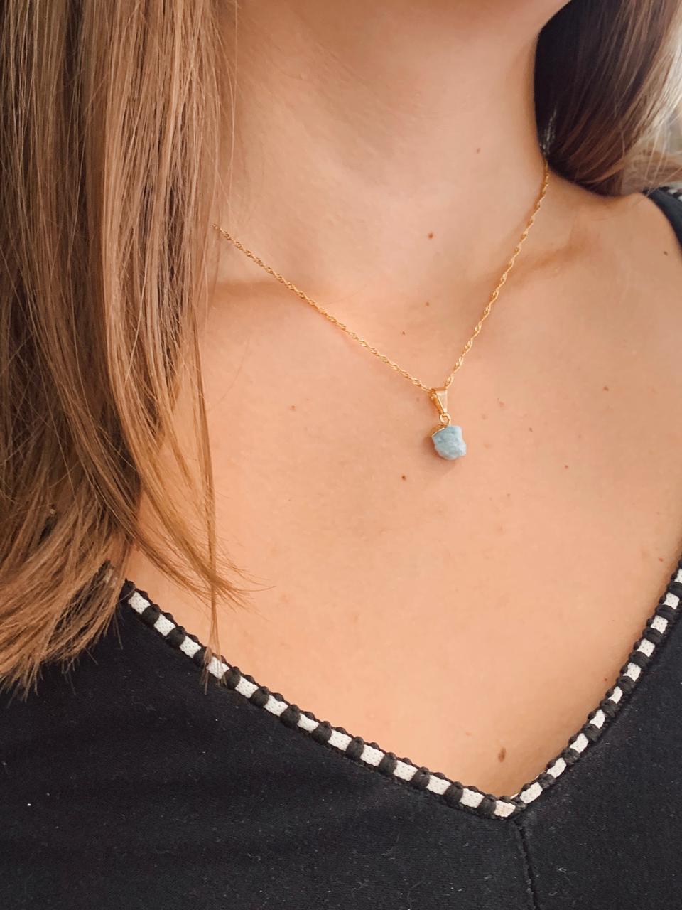 * Pingente Bruto de Água-marinha – Preserva a energia natural da pedra, potencializando a intuição, a proteção energética e a sensação de paz interior.