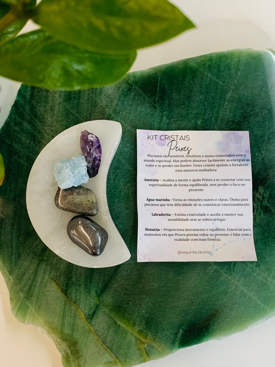 Para aqueles que tem como signo o último do zodíaco, a Ametista é a principal pedra. Ela potencializa a sensibilidade, a intuição e a misticidade dos piscianos, além de evitar a tristeza e trazer a paz. Outras pedras presentes são a Fluorita, a Labradorita e a Pedra da Lua. A Fluorita é responsável por purificar e combater o estresse. A Labradorita tem o poder de proteger e formar barreira contra energias ruins. Já a Pedra da Lua, atua no campo afetivo, ajudando com problemas de amor e trazendo sensualidade para as mulheres.