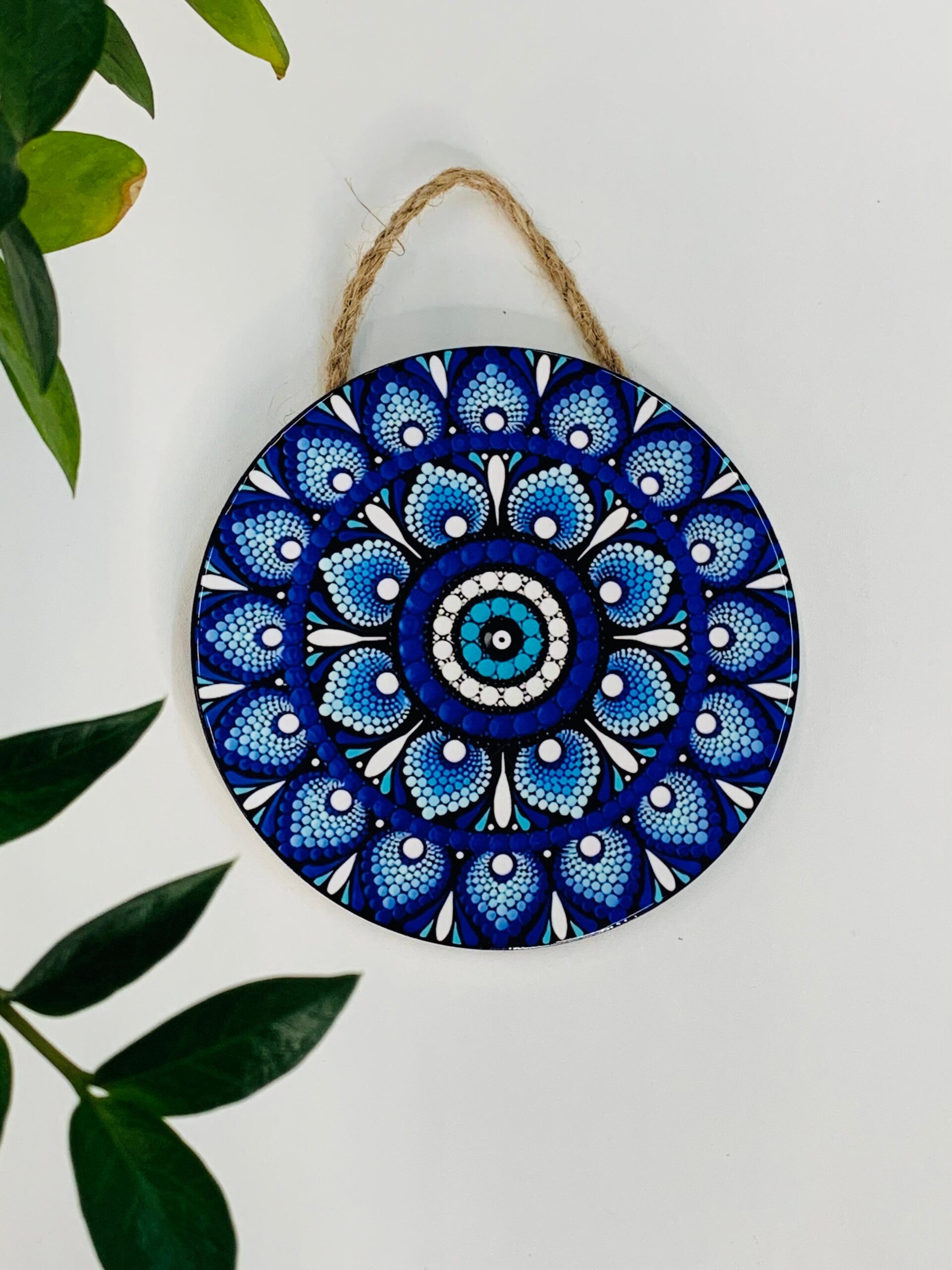 Inspirada no tradicional amuleto conhecido como “Olho Grego”, essa mandala carrega o significado de afastar inveja, mau-olhado e energias negativas. O formato circular da mandala representa totalidade, equilíbrio e conexão espiritual.