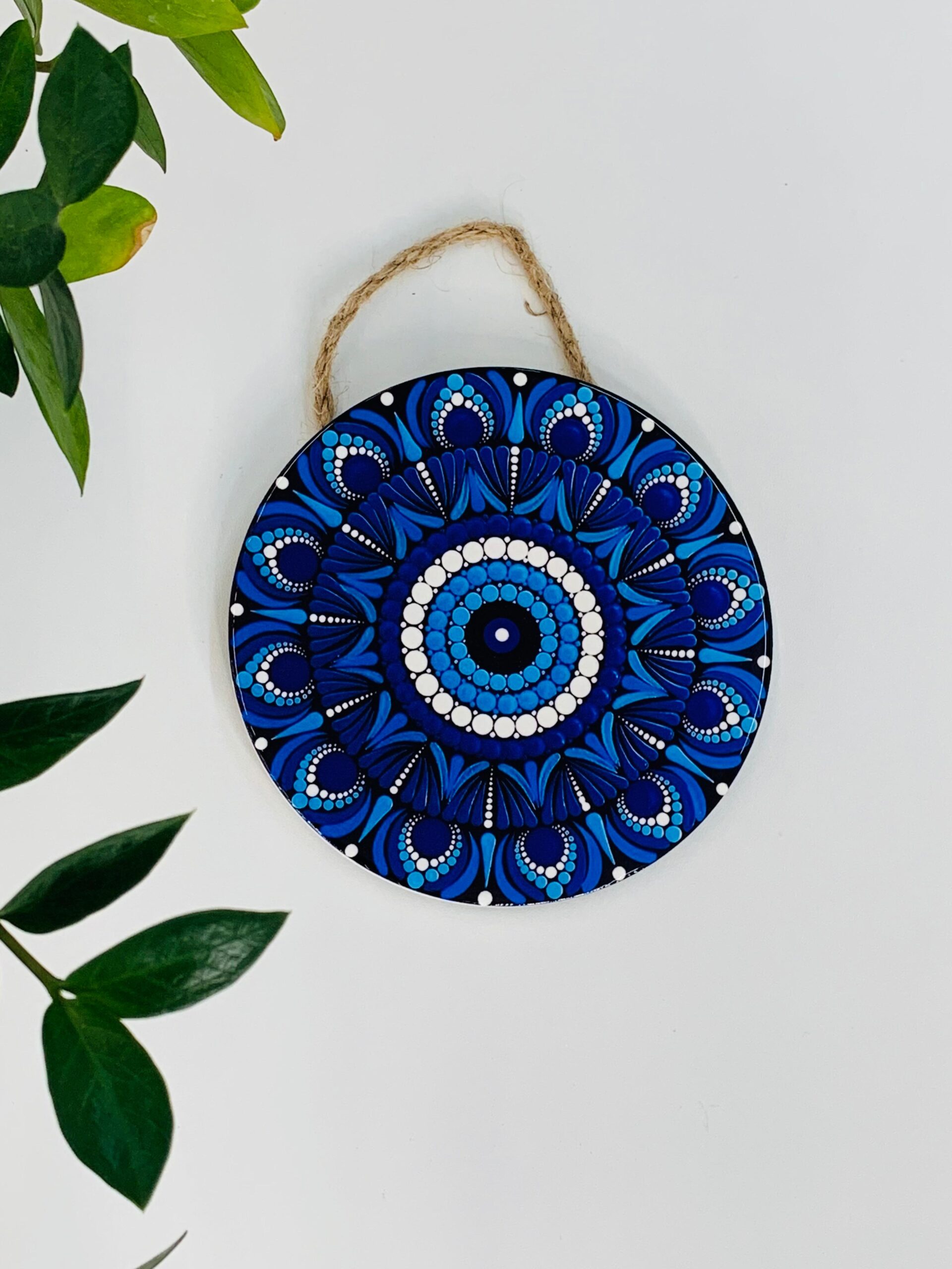 Inspirada no tradicional amuleto conhecido como “Olho Grego”, essa mandala carrega o significado de afastar inveja, mau-olhado e energias negativas. O formato circular da mandala representa totalidade, equilíbrio e conexão espiritual.