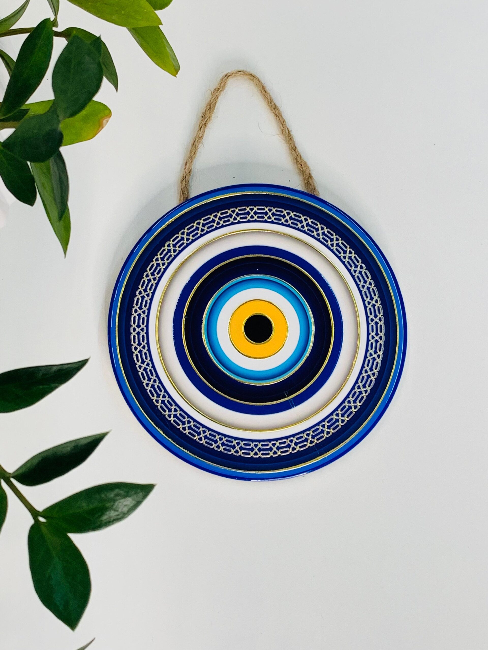 Inspirada no tradicional amuleto conhecido como “Olho Grego”, essa mandala carrega o significado de afastar inveja, mau-olhado e energias negativas. O formato circular da mandala representa totalidade, equilíbrio e conexão espiritual. Já o olho no centro simboliza vigilância, consciência e proteção constante.