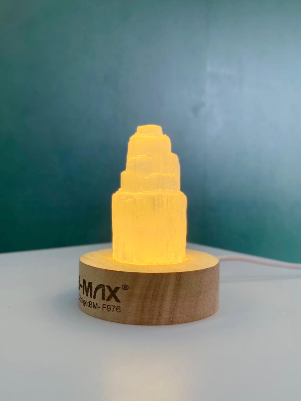 Esculpida em formato de torre, a selenita simboliza elevação e alinhamento energético. Conhecida por sua associação com purificação e clareza, é frequentemente utilizada para harmonizar ambientes e promover sensação de paz. Com a iluminação em LED, a peça ganha um brilho suave e acolhedor, realçando a transparência natural da selenita e criando uma atmosfera leve e relaxante.